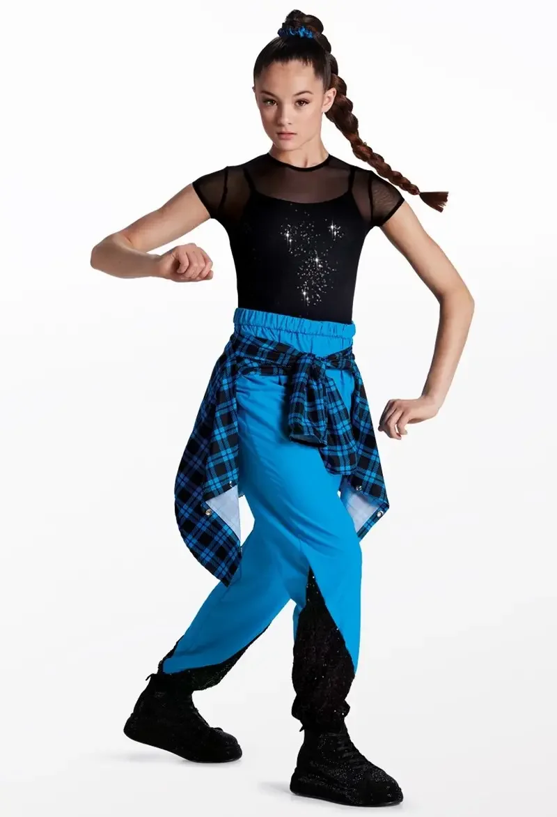 Accessories: Teal Scrunchie pinned around Dancer’s Bun & Teal/Black Flannel Shirt tied around waist (use safety pins to keep in place)