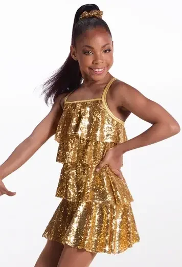 Accessories: Gold Scrunchie pinned around Dancer’s Bun