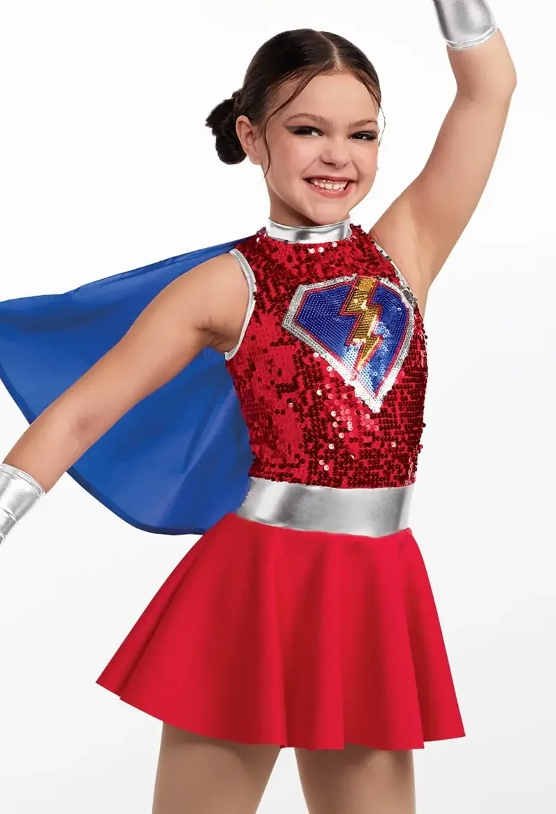 Accessories: Cape & Mask & Bow hairpiece pinned in on Dancer’s TOP FRONT of Dancer’s Bun