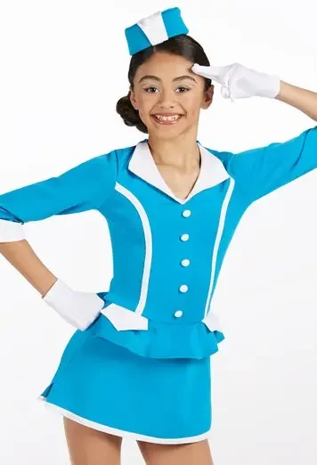 Accessories: Hat pinned to RIGHT side of TOP of Dancer’s Head & White Gloves