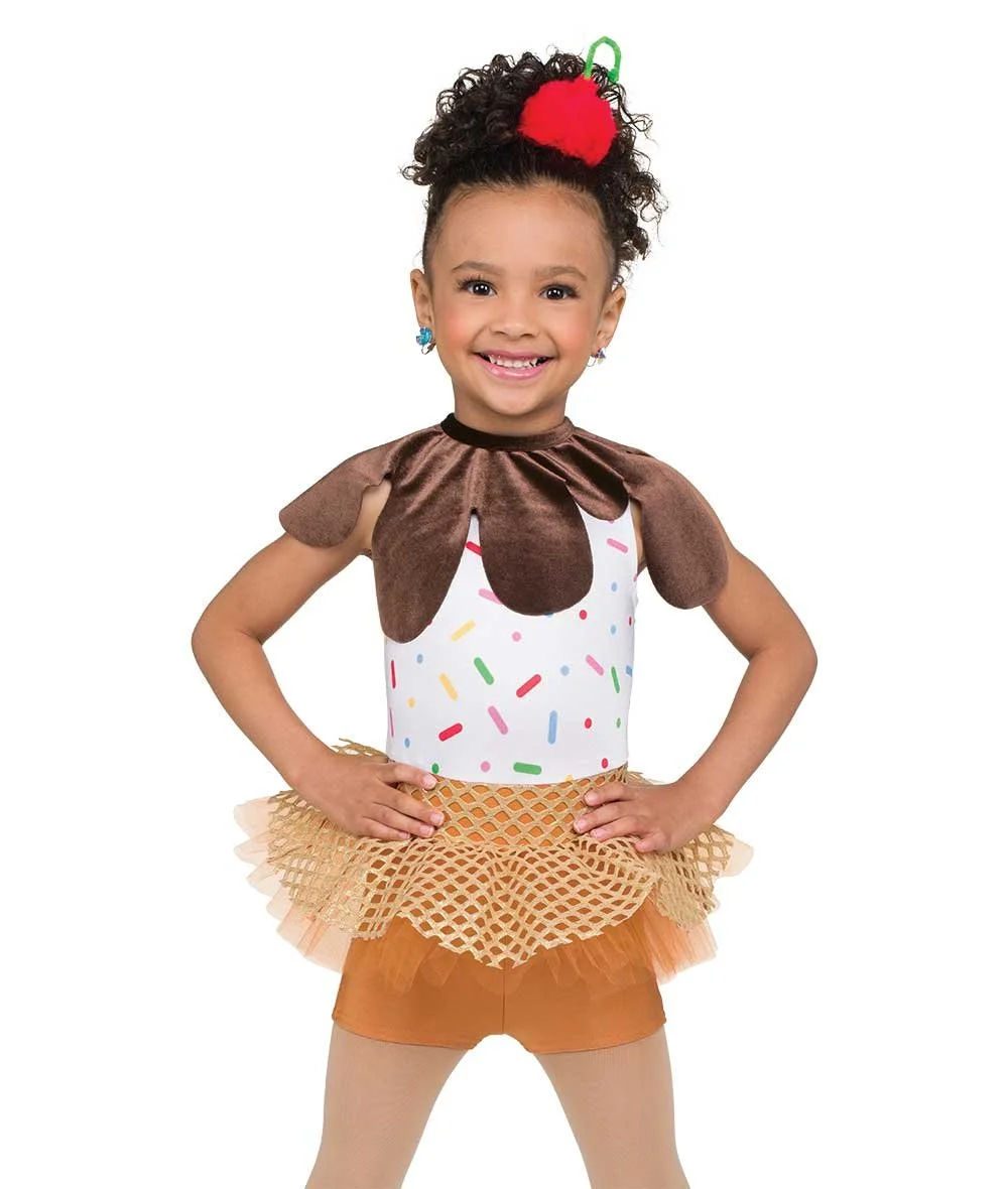 Accessories: Cherry hairpiece pinned in on Dancer’s TOP LEFT in front of Dancer’s Bun